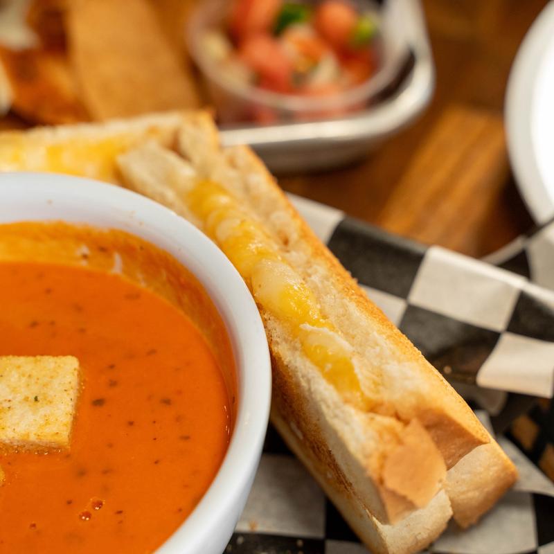Melty mozzarella and cheddar cheeses sandwiched between thick Texas toast | Substitute a cup of tomato soup $1.99