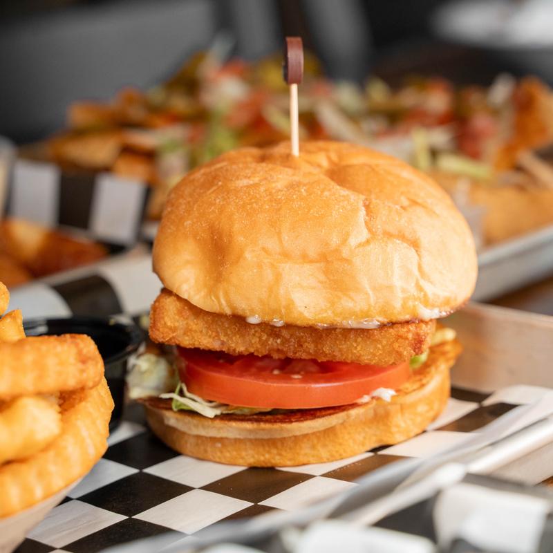 Crispy fried white fish, shredded lettuce, tomato slices, & pickle. Served with a side of tartar sauce.